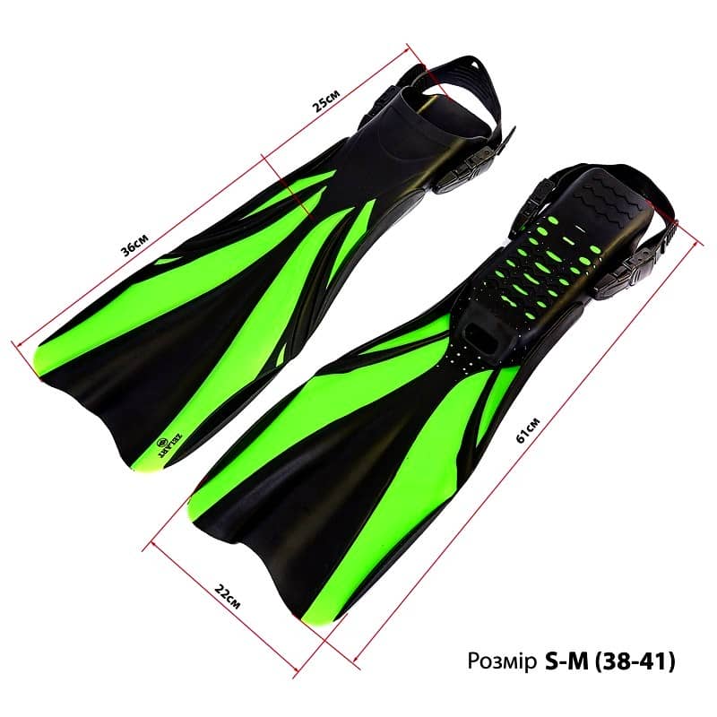 Ласти з відкритою п"ятою Zelart S-M (38-41), салатовий-чорний, код: F31_SMLG