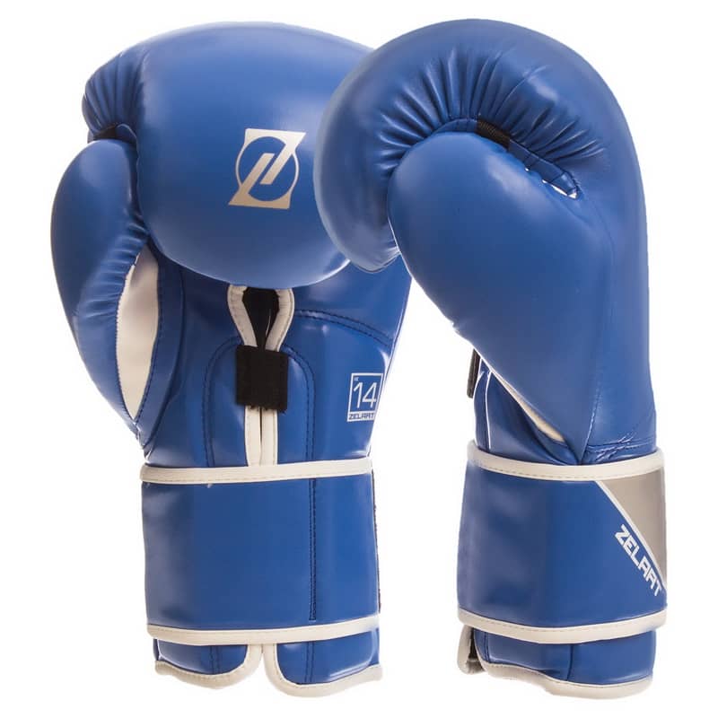Рукавички боксерські Zelart PU 14 унцій, синій-срібний, код: BO-1361_14_BLGR-S52