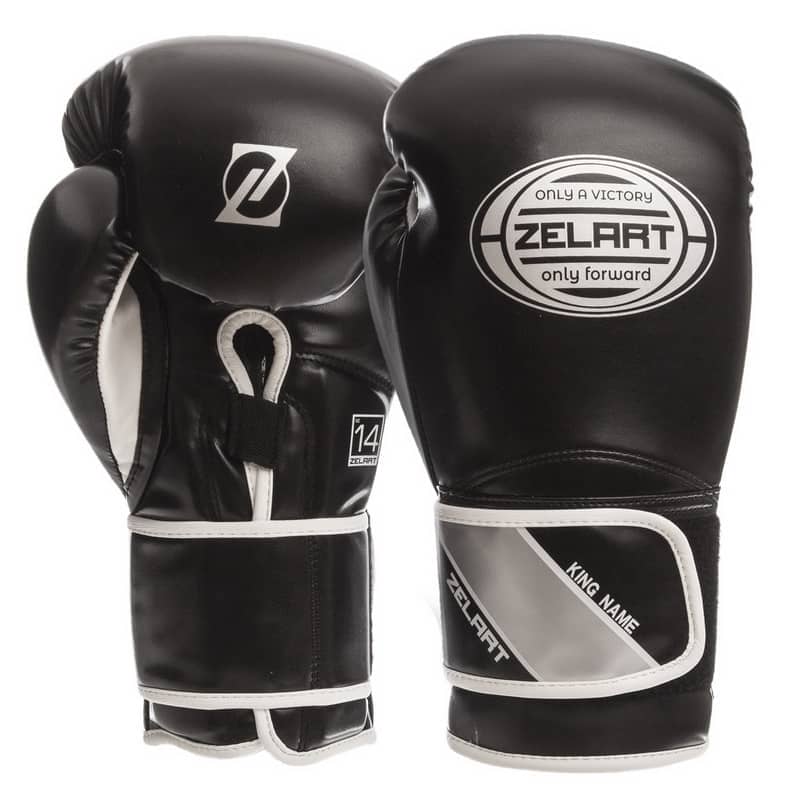 Рукавички боксерські Zelart PU 14 унцій, чорний-срібний, код: BO-1361_14BKGR-S52