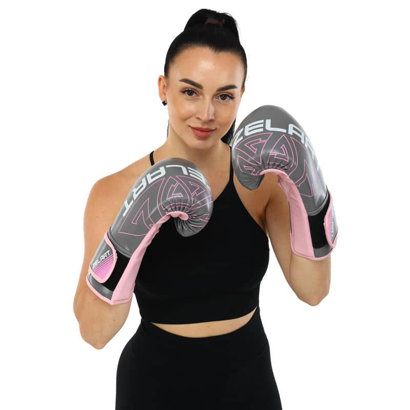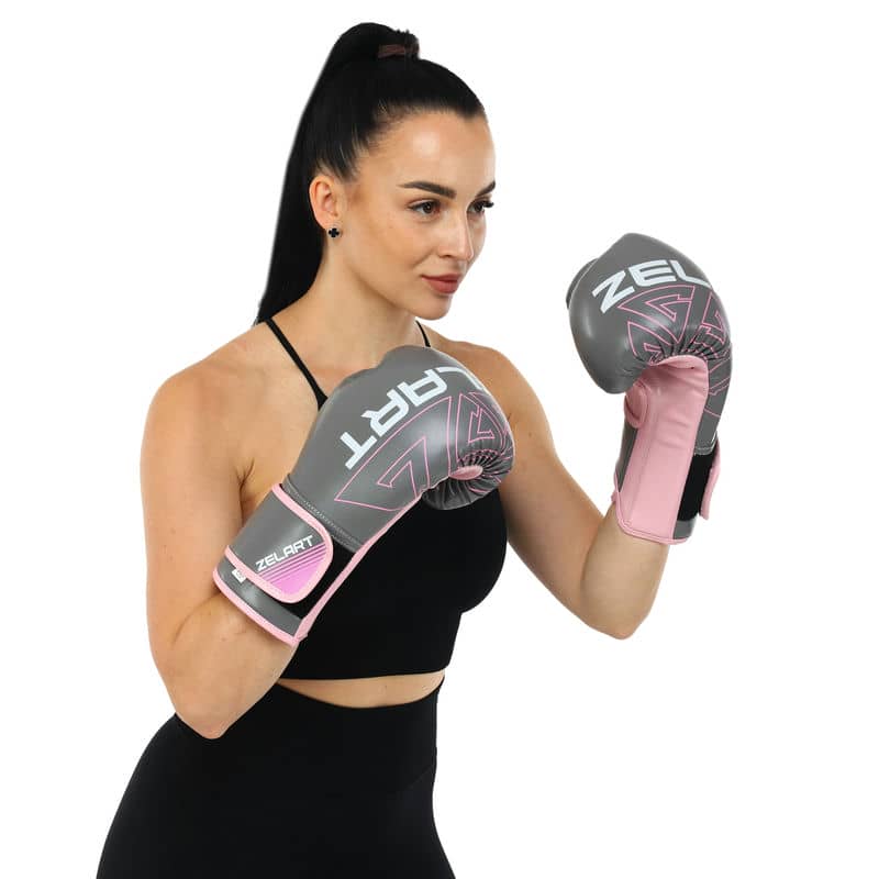 Рукавички боксерські Zelart 12 унцій, сірий-рожевий, код: BO-9056_12GRP