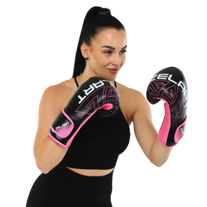 Рукавички боксерські Zelart 12 унцій, чорний-рожевий, код: BO-9056_12BKP