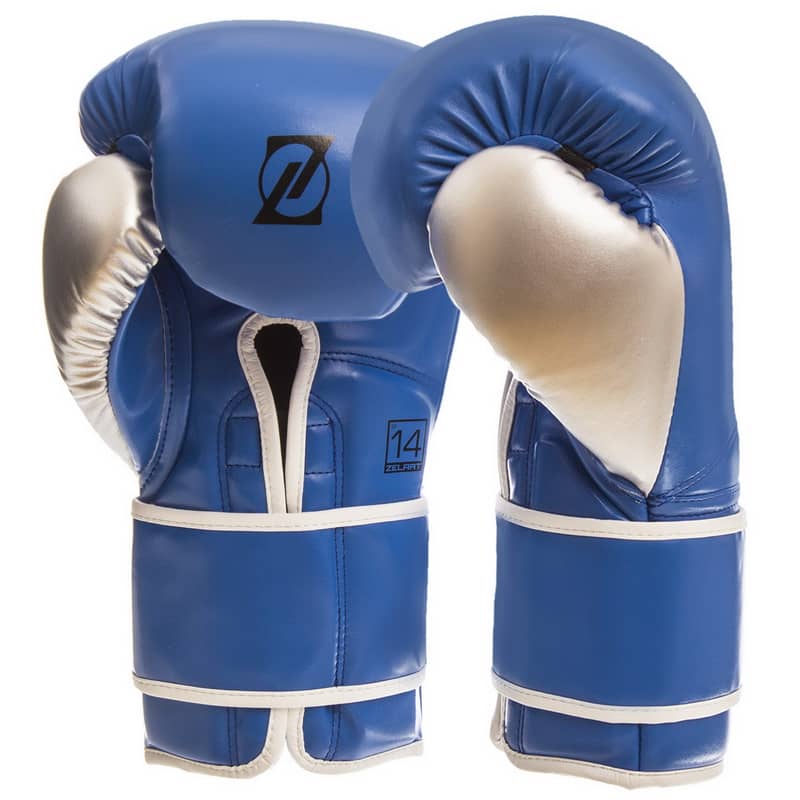 Рукавички боксерські Zelart PU 14 унцій, синій-срібний, код: BO-1384_14_BLGR-S52
