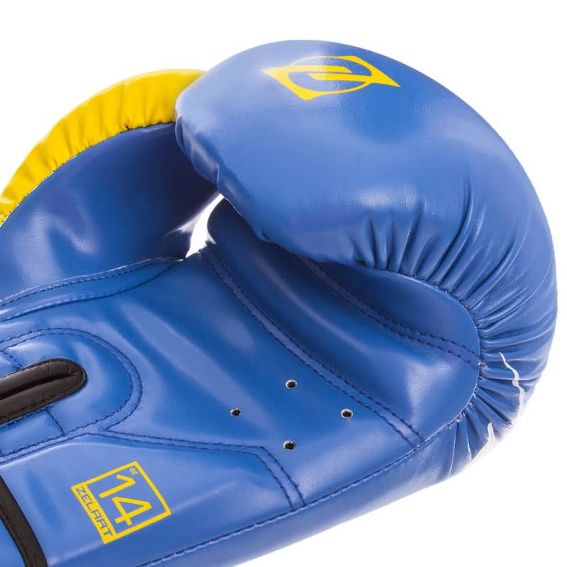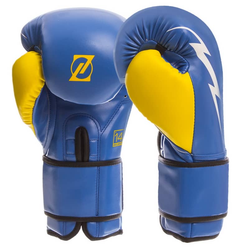 Рукавички боксерські Zelart PU 14 унцій, синій-жовтий, код: BO-1420_14_BLY-S52