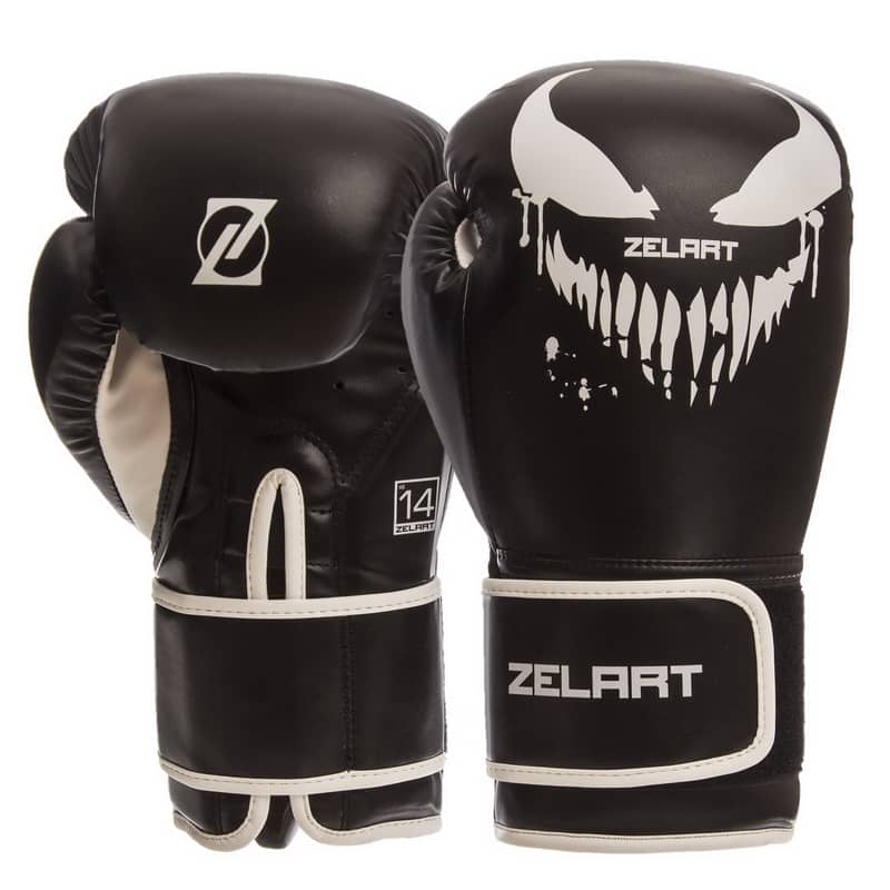 Рукавички боксерські Zelart PU 12 унцій, чорний-білий, код: BO-1370_12_BKW-S52