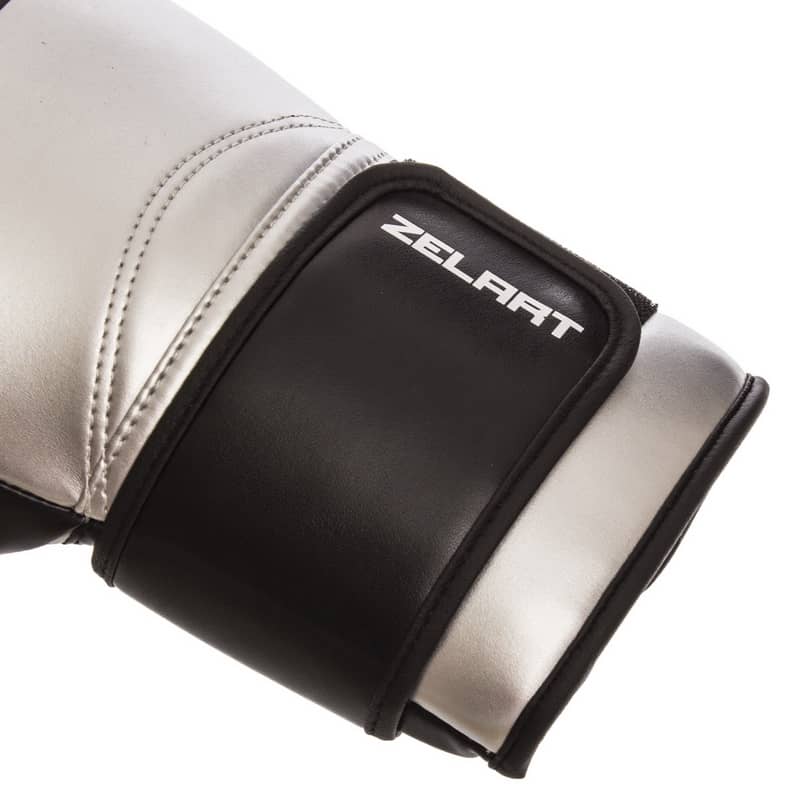 Рукавички боксерські Zelart PU 12 унцій, срібний-чорний, код: BO-1384_12_GRBK-S52