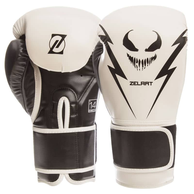 Рукавички боксерські Zelart PU 10 унцій, білий-чорний, код: BO-1420_10_WBK-S52