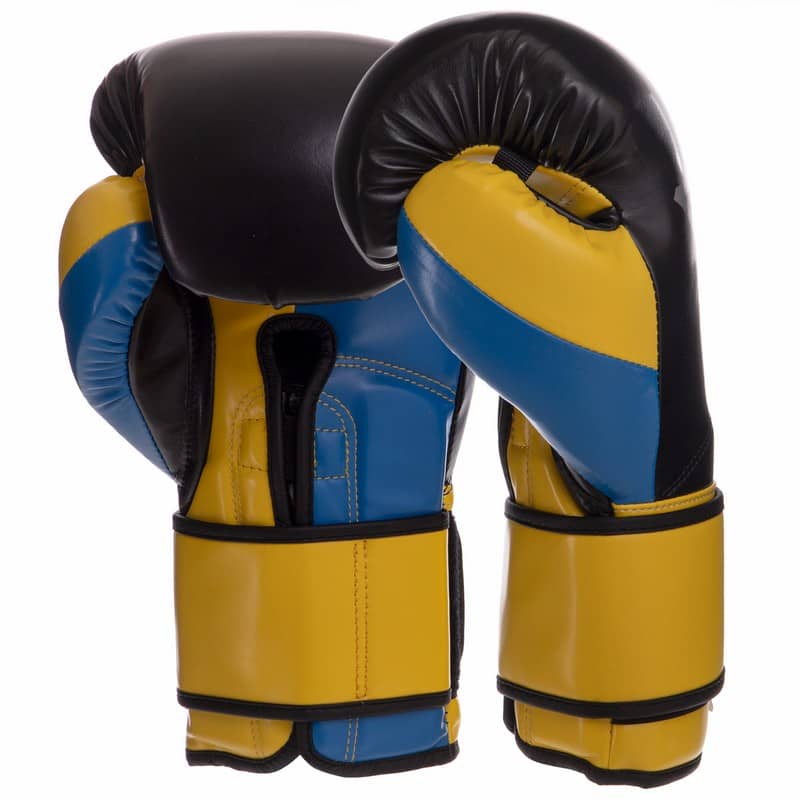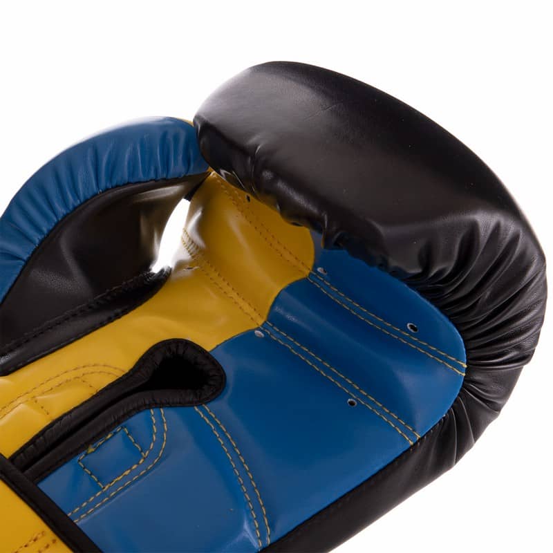 Рукавички боксерські Zelart 12 унцій, синій-жовтий-чорний, код: BO-2887_12_BLYBK-S52