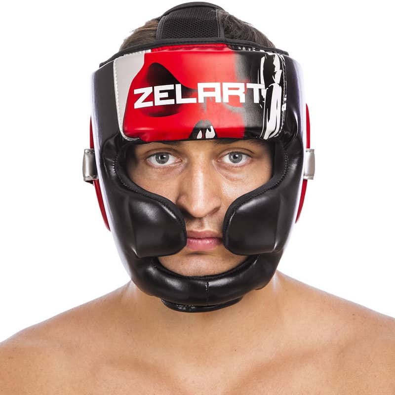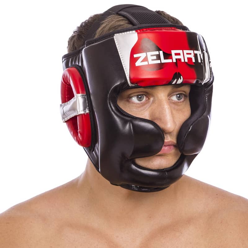 Шолом боксерський з повним захистом Zelart L, чорний-червоний, код: BO-1320_LR-S52