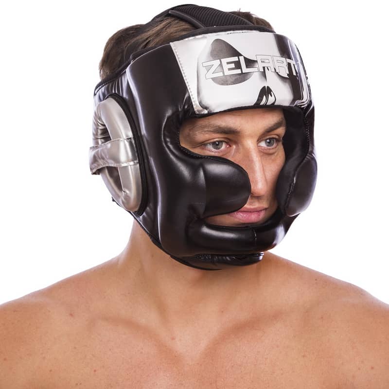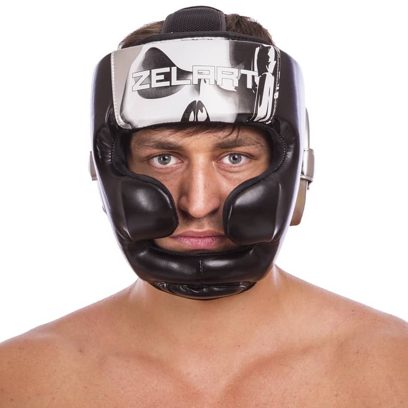 Шолом боксерський з повним захистом Zelart L, чорний-білий, код: BO-1320_LW-S52