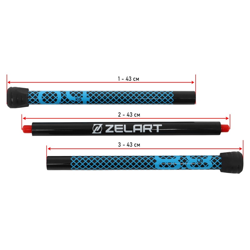 Палиця гімнастична (бодібар) 3-х секційна Bar Zelart 4кг, чорний-блакитний, код: FI-9994-4-S52