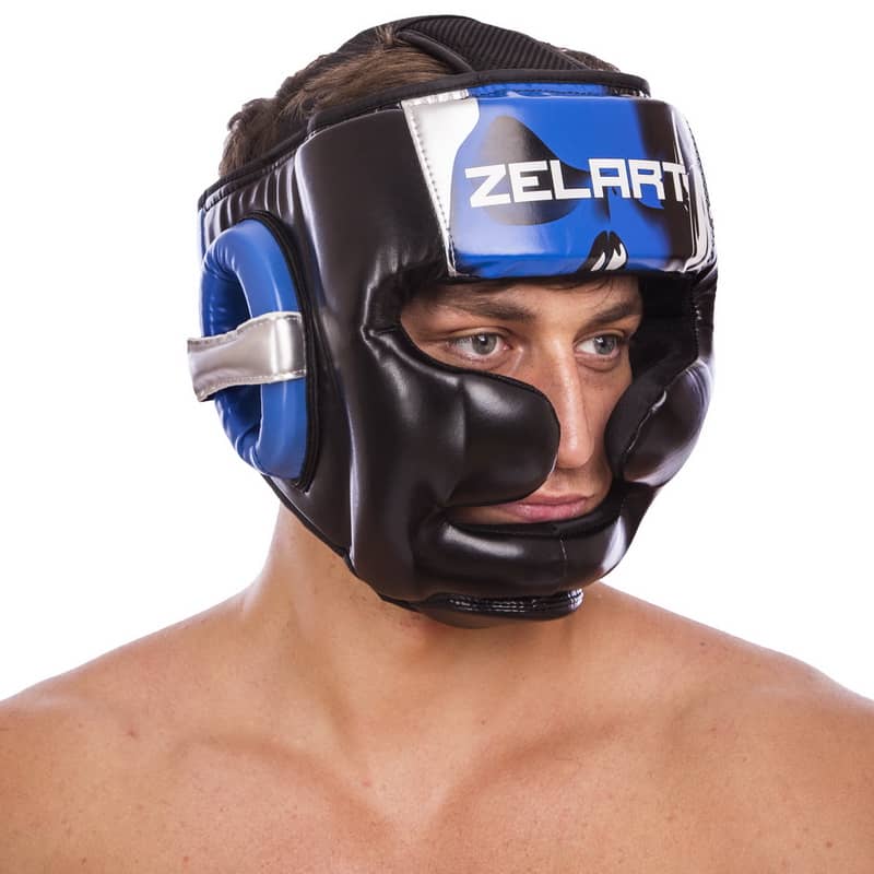 Шолом боксерський з повним захистом Zelart L, чорний-синій, код: BO-1320_LBL-S52
