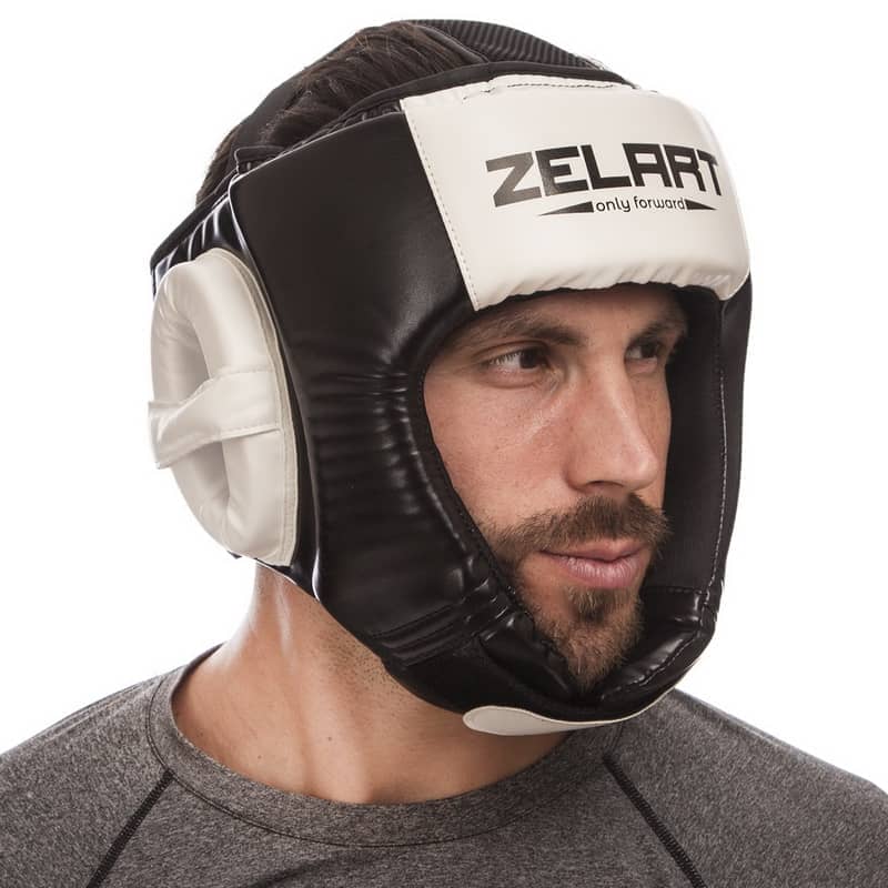 Шолом боксерський відкритий Zelart L чорний-білий, код: BO-1316_LW-S52