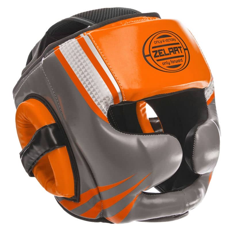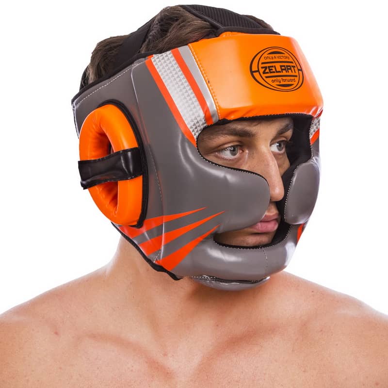 Шолом боксерський з повним захистом Zelart L помаранчевий-сірий, код: BO-1344_LOR-S52