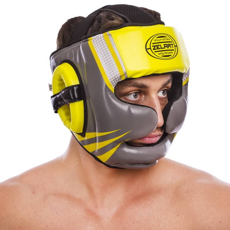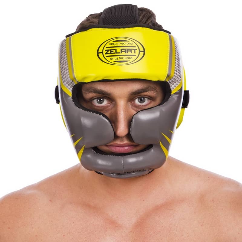 Шолом боксерський з повним захистом Zelart M лимонний-сірий, код: BO-1344_MY-S52