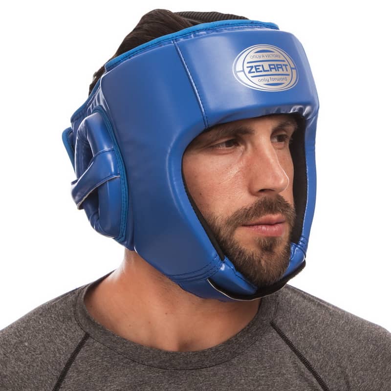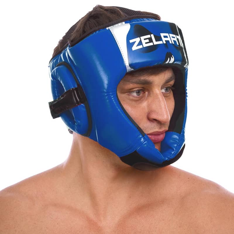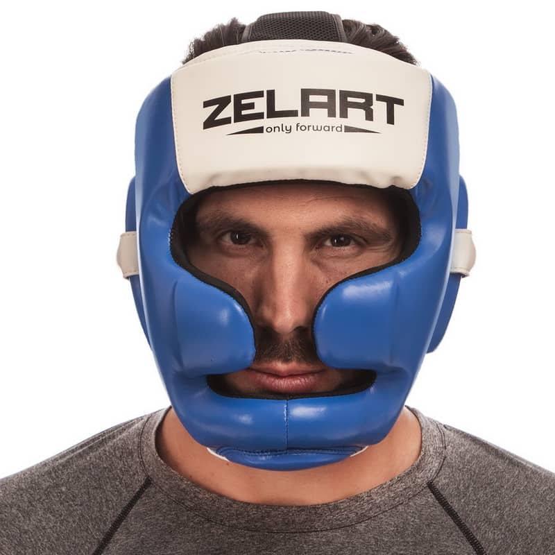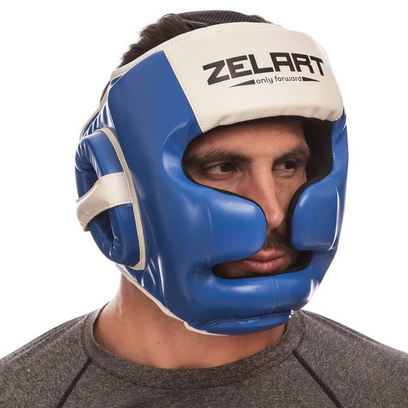 Шолом боксерський з повним захистом Zelart M, синій-білий, код: BO-1390_MBL