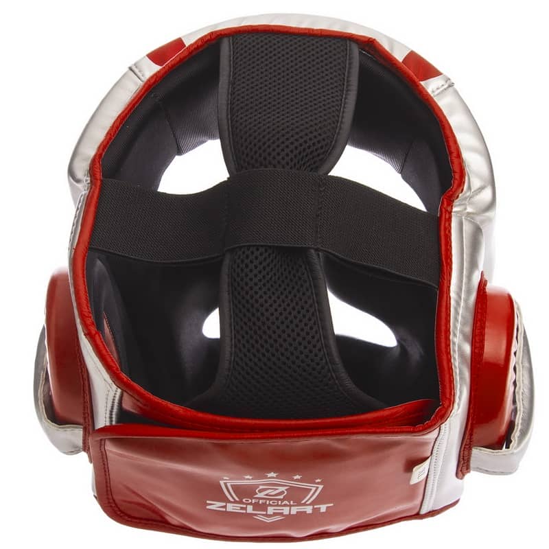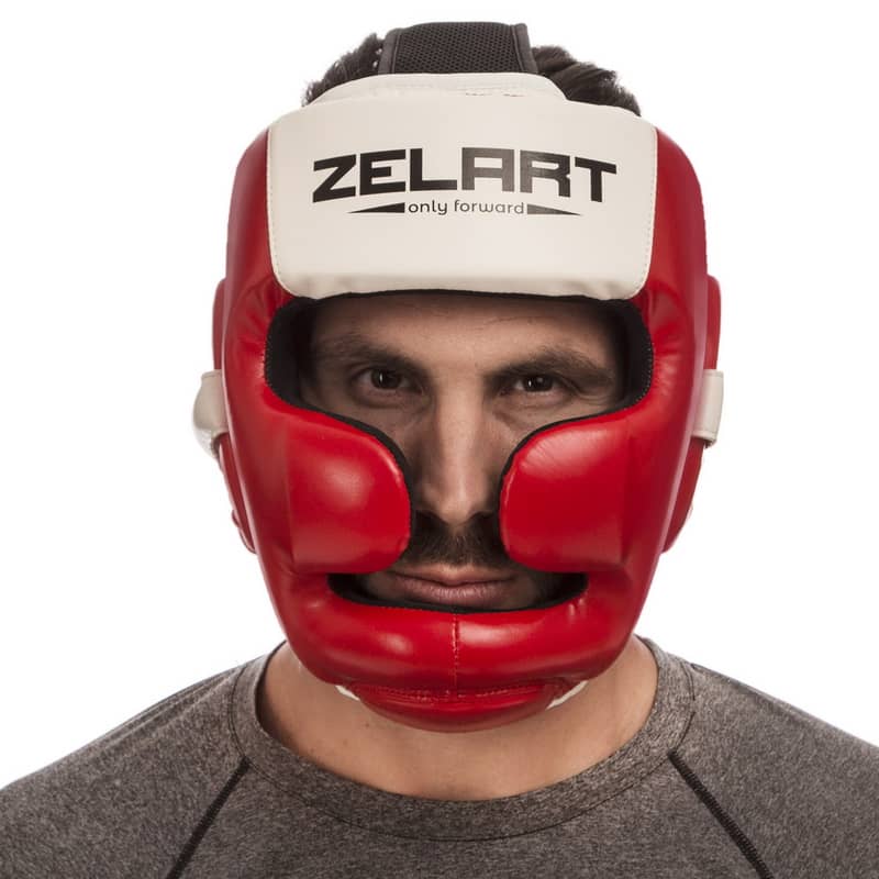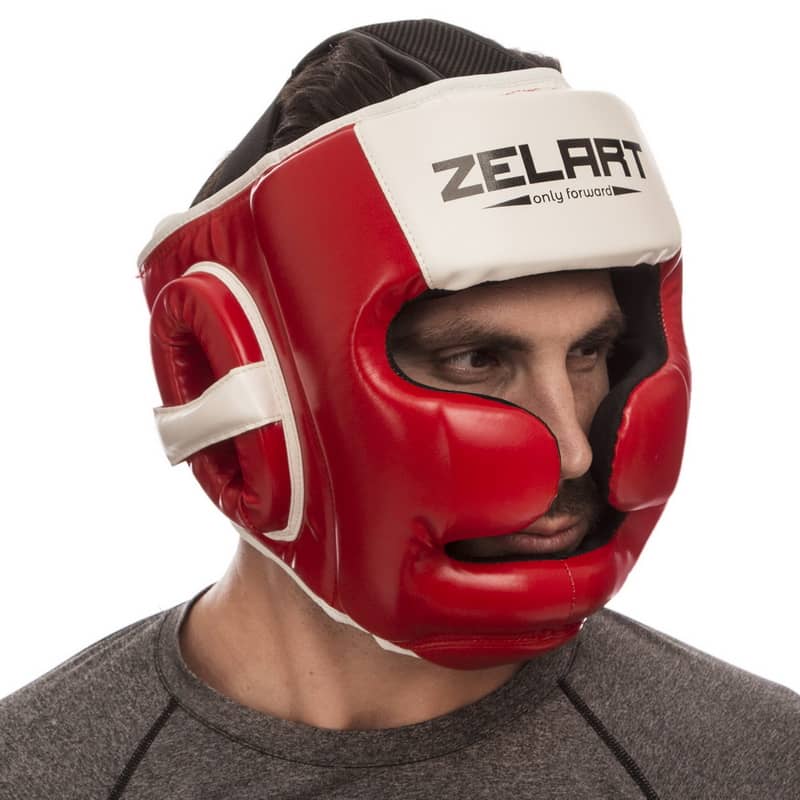 Шолом боксерський з повним захистом Zelart L, червоний-білий, код: BO-1390_LR