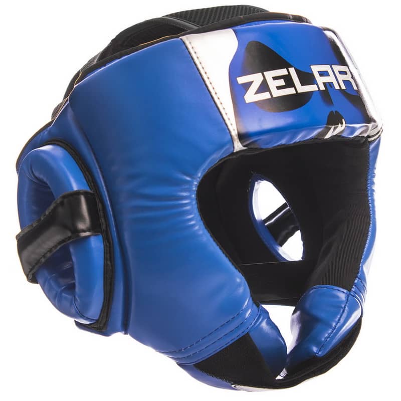 Шолом боксерський з повним захистом Zelart L, синій-білий, код: BO-1390_LBL