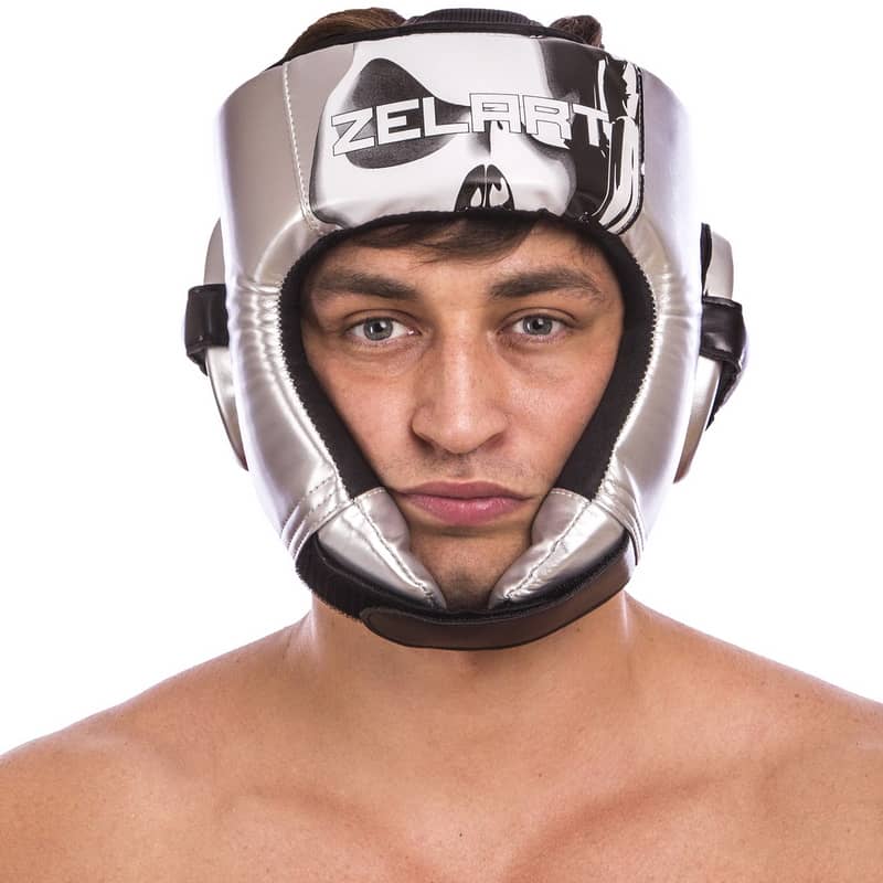 Шолом боксерський з повним захистом Zelart L, чорний-срібний, код: BO-1367_LBK-S52