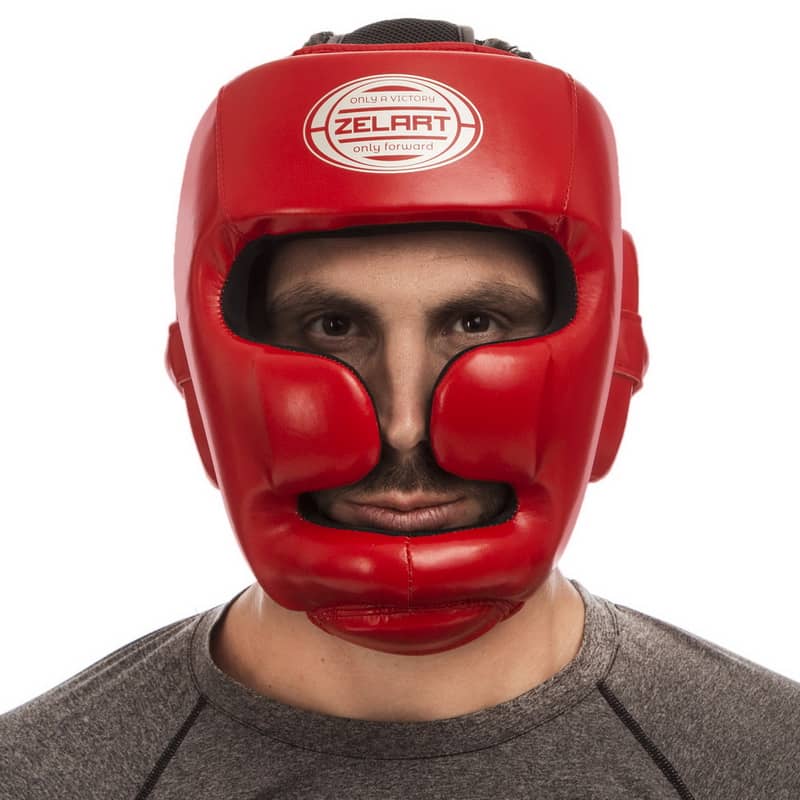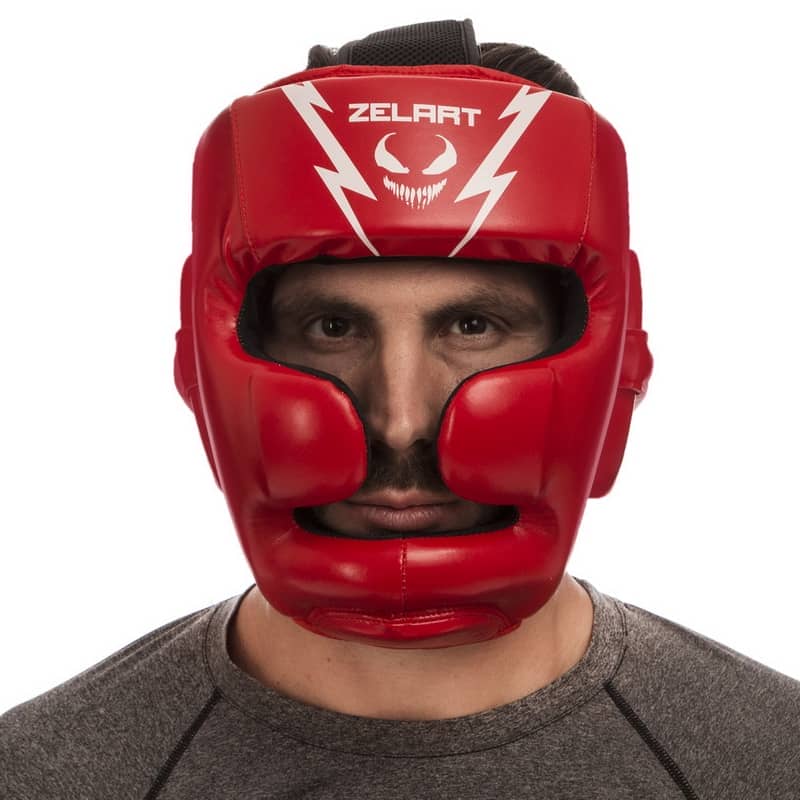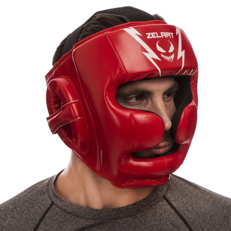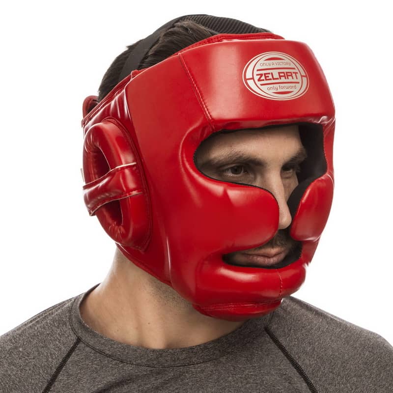 Шолом боксерський з повним захистом Zelart M, червоний, код: BO-1355_MR-S52