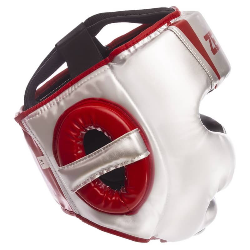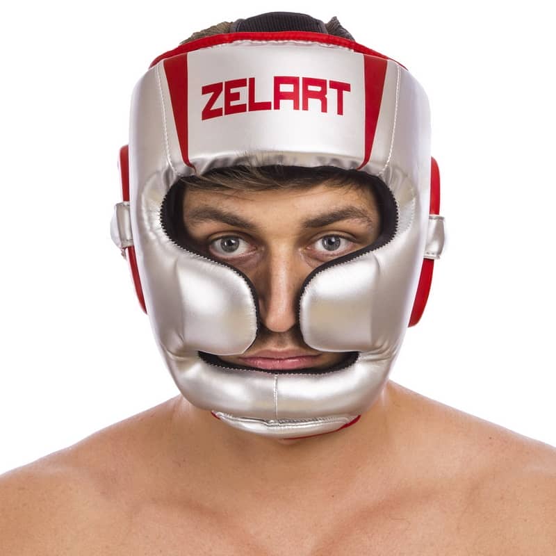 Шолом боксерський з повним захистом Zelart L, срібний-червоний, код: BO-1328_LGR-S52