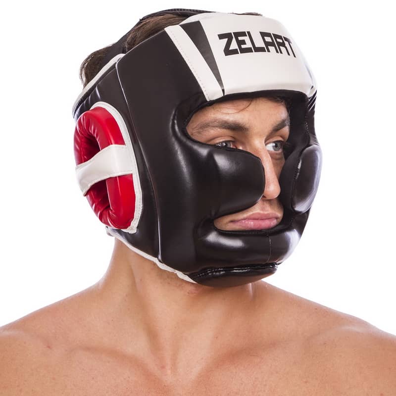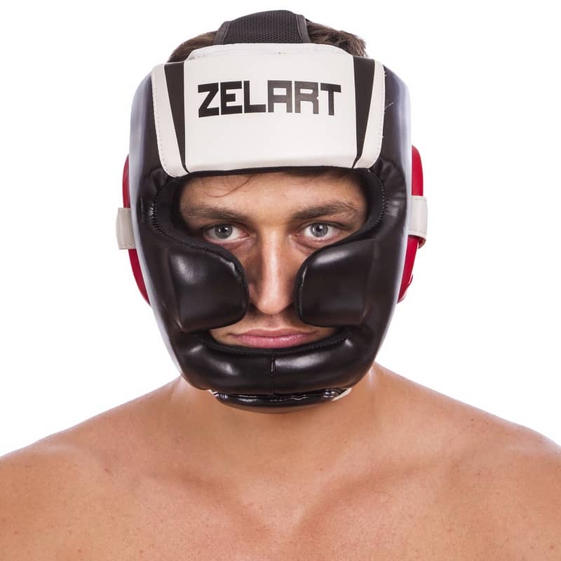 Шолом боксерський з повним захистом Zelart L, білий-чорний-червоний, код: BO-1328_LW-S52