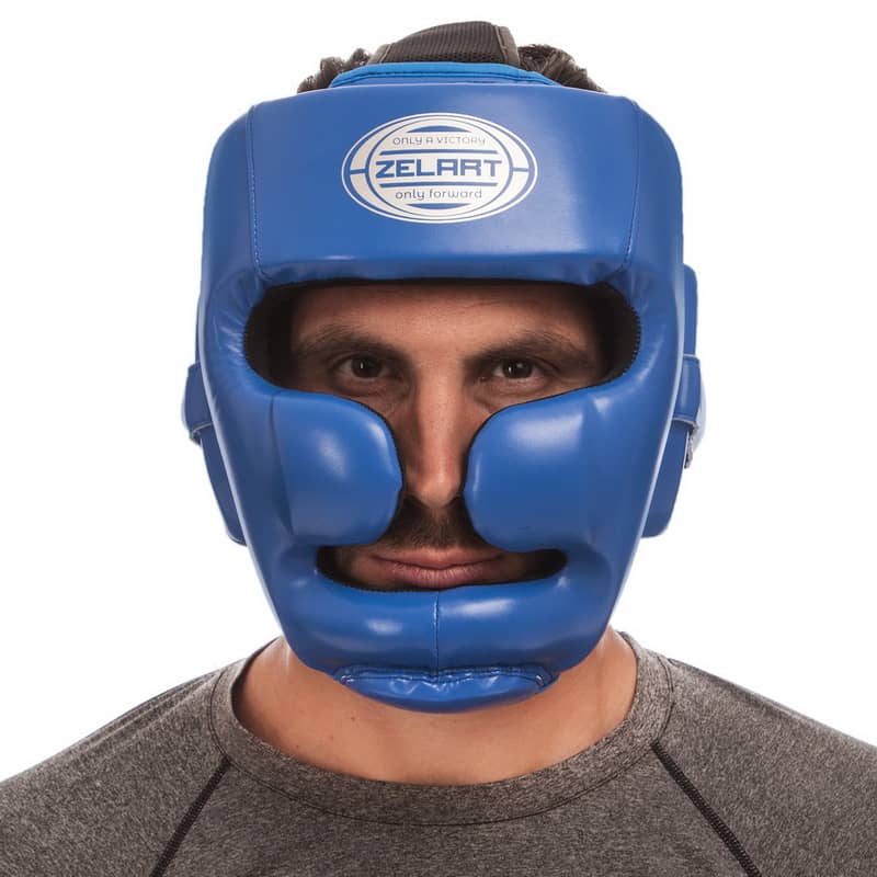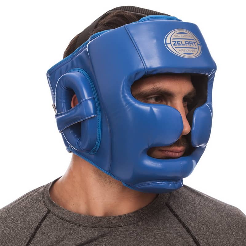 Шолом боксерський з повним захистом Zelart M, синій-срібний, код: BO-1367_MBL-S52