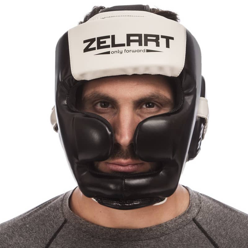 Шолом боксерський з повним захистом Zelart L, чорний-білий, код: BO-1390_LBK