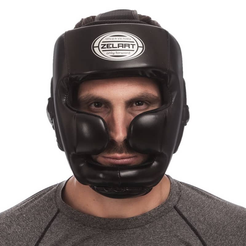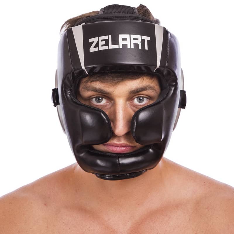 Шолом боксерський з повним захистом Zelart XL, чорний-срібний, код: BO-1367_XLBK-S52