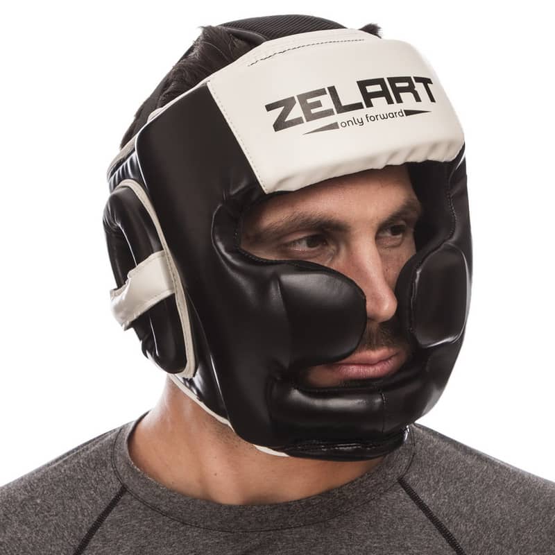 Шолом боксерський з повним захистом Zelart XL, чорний-білий, код: BO-1390_XLBK