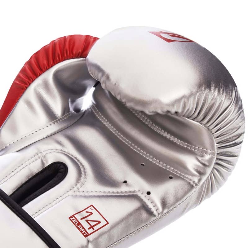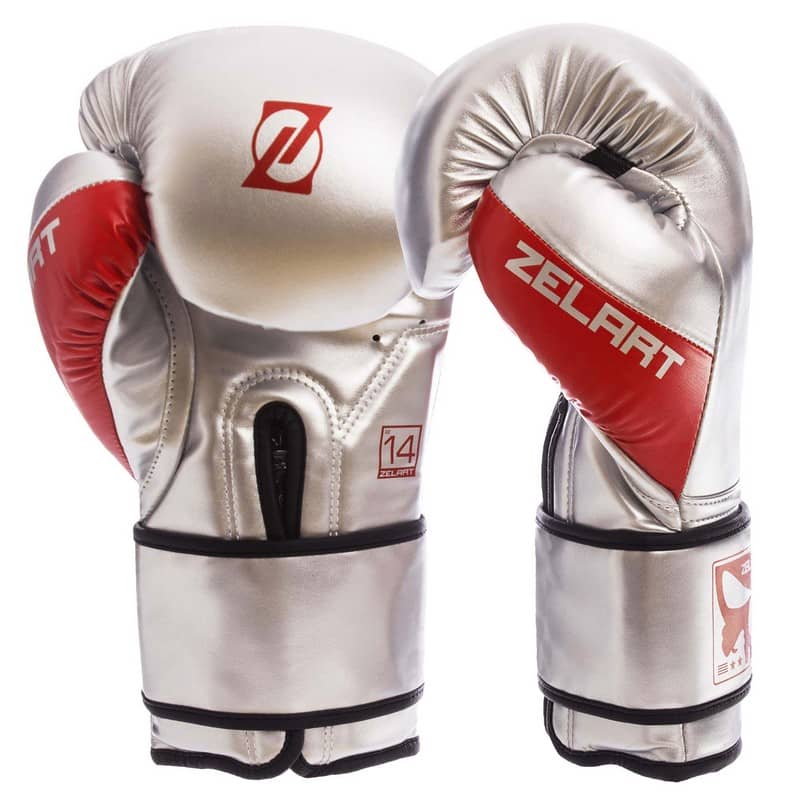 Рукавички боксерські Zelart PU 14 унцій, срібний-червоний, код: BO-1323_14GRR