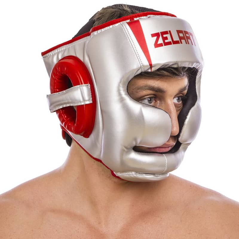 Шолом боксерський з повним захистом Zelart XL, срібний-червоний, код: BO-1328_XLGR-S52