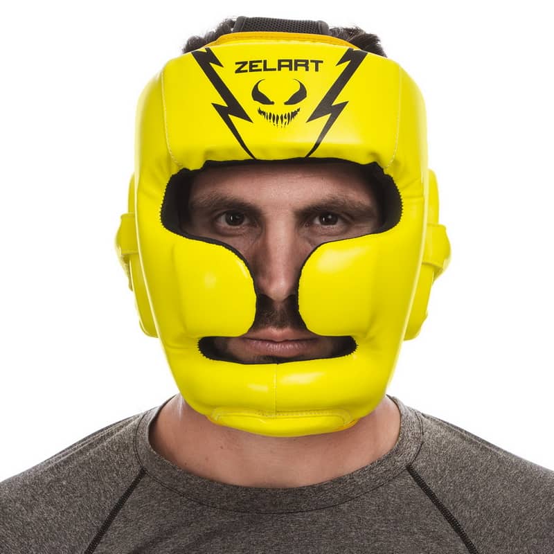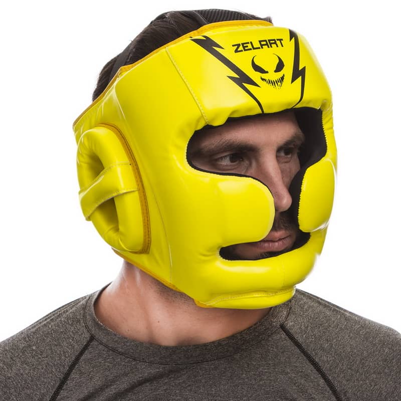 Шолом боксерський з повним захистом Zelart XL, лимонний-чорний, код: BO-1375_XLY-S52