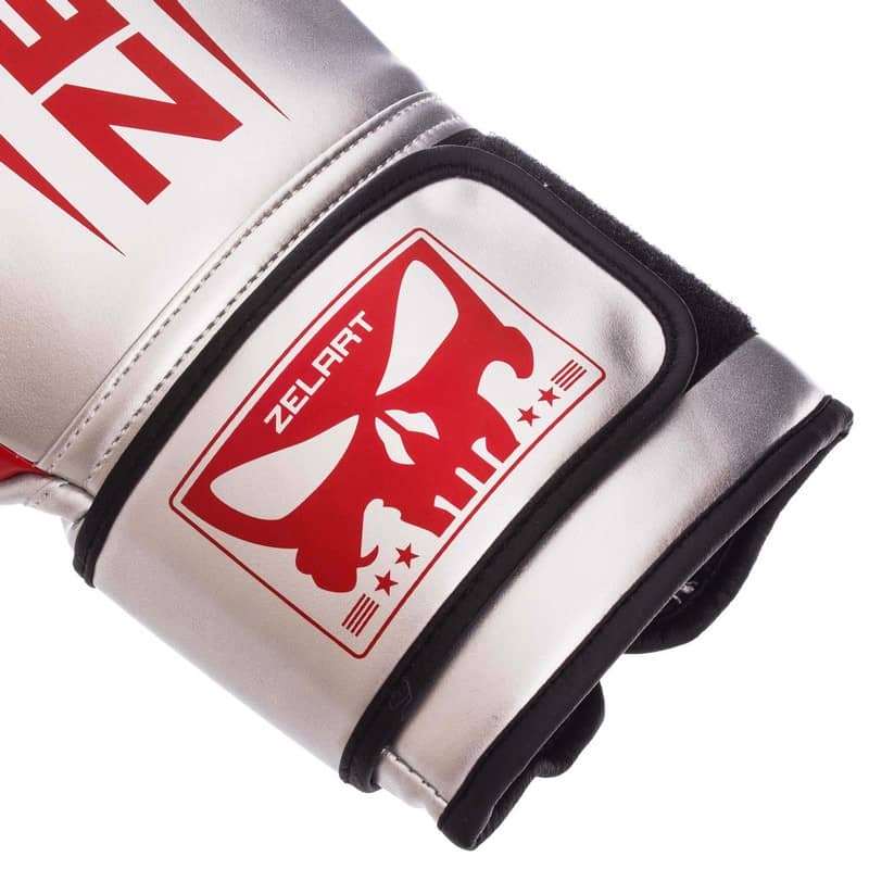 Рукавички боксерські Zelart PU 12 унцій, срібний-червоний, код: BO-1323_12GRR