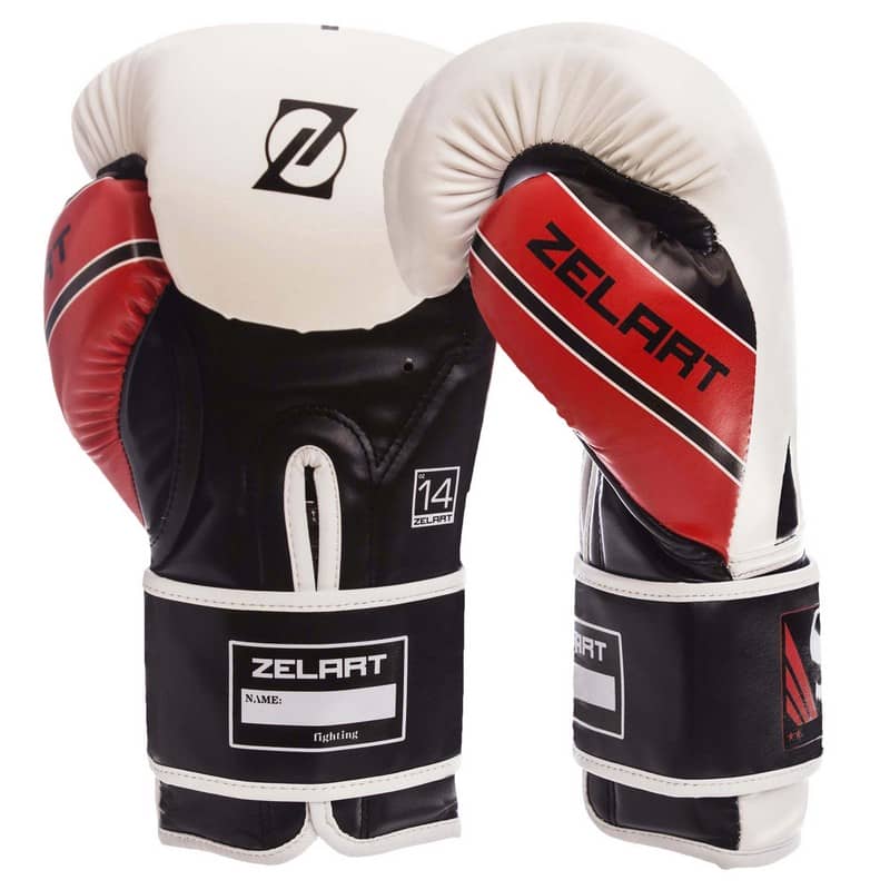 Рукавички боксерські Zelart PU 14 унцій, білий-чорний-червоний, код: BO-1323_14WBKR
