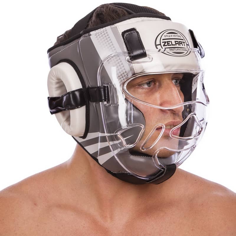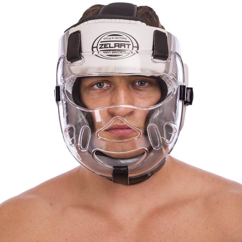 Шолом для єдиноборств з прозорою маскою Zelart XL, чорний-білий, код: BO-1360_XLW-S52