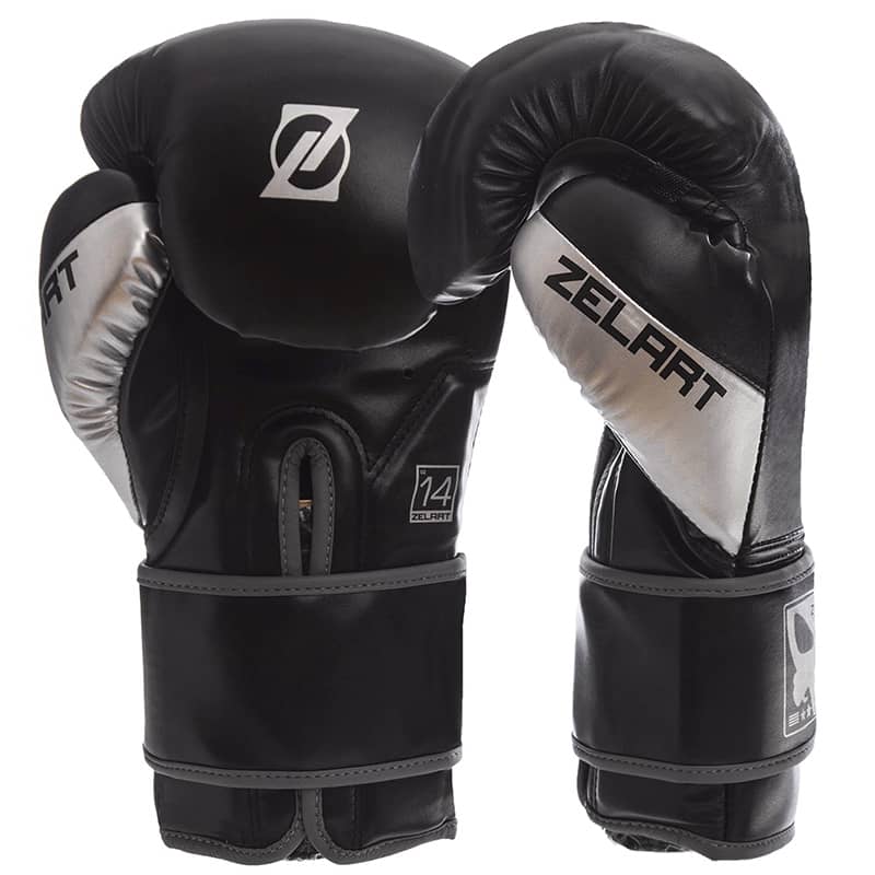 Рукавички боксерські Zelart PU 12 унцій, чорний-срібний, код: BO-1323_12BKGR