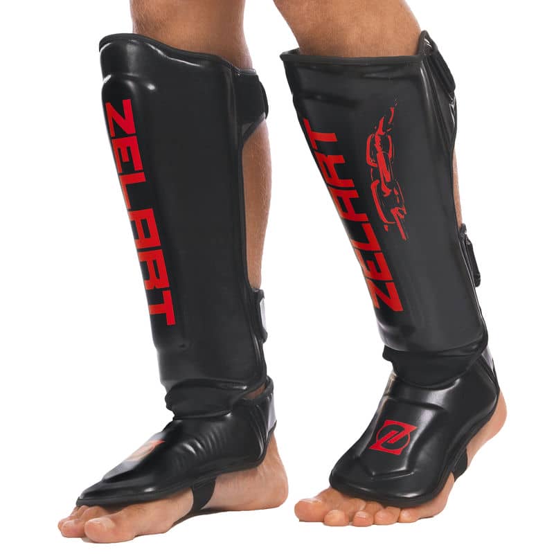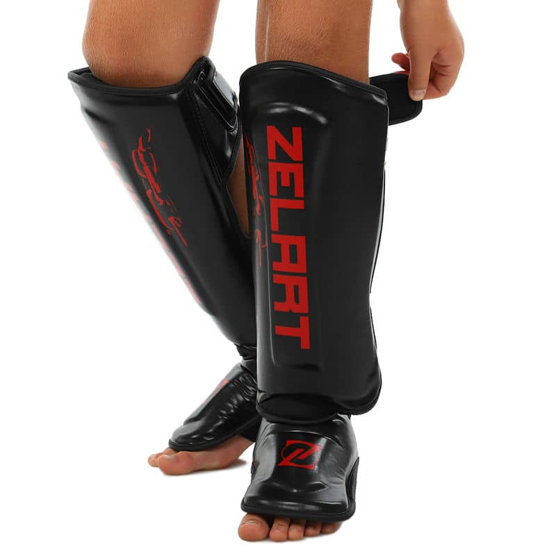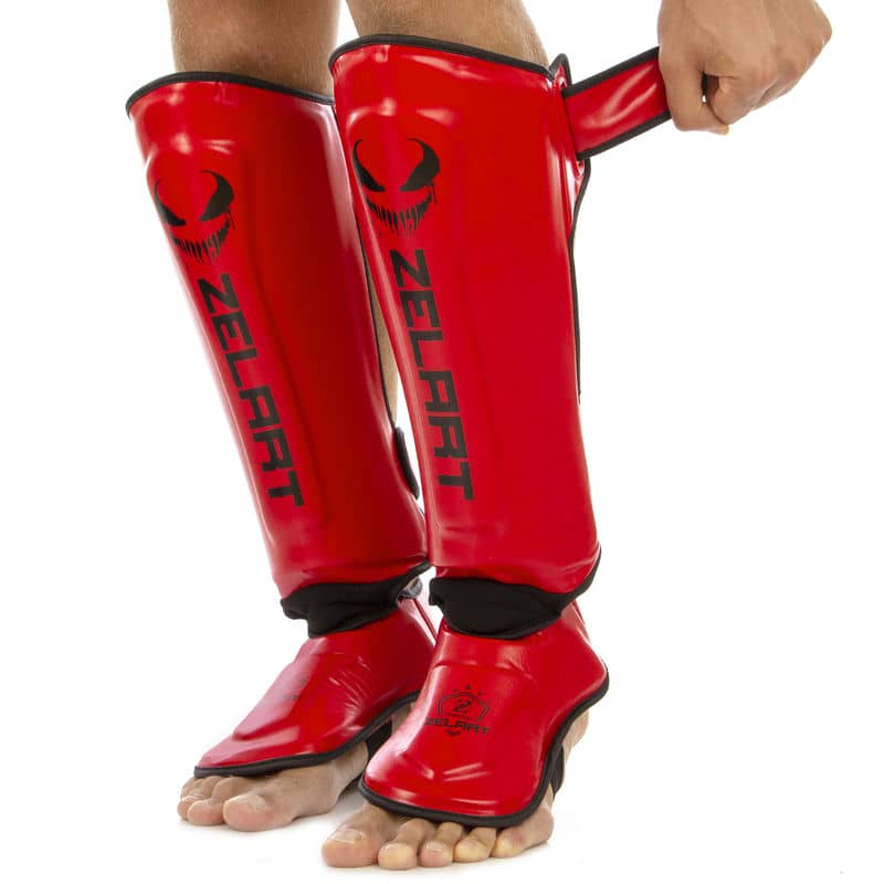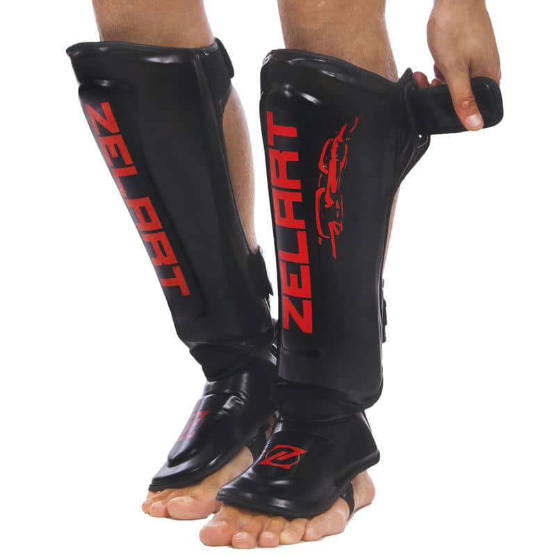 Захист гомілки і стопи для единоборств Zelart S, червоний-чорний, код: BO-1376_SRBK