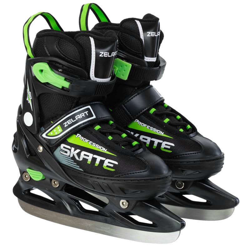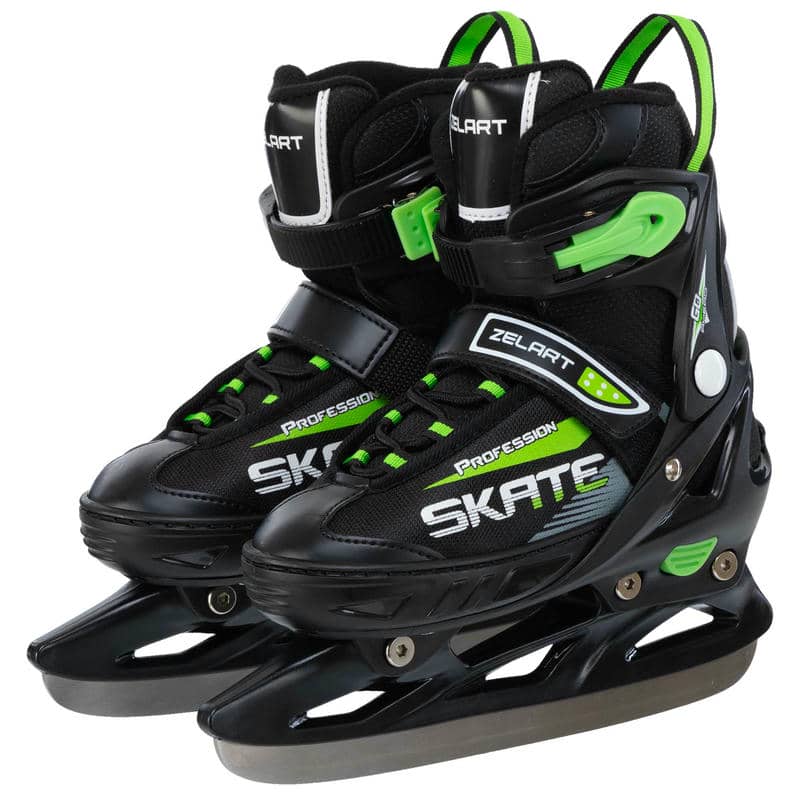 Ковзани розсувні дитячі хокейні Zelart M (37-40), чорний-салатовий, код: Z-5861_MBK