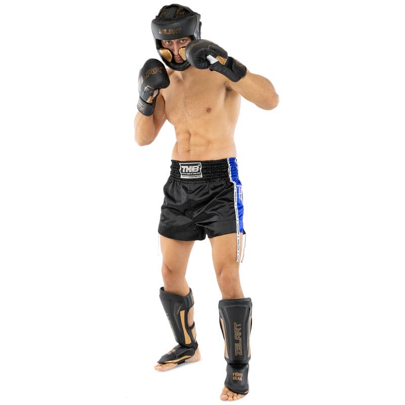 Захист для гомілки і стопи Муай Тай, ММА, Кікбоксинг Zelart M, чорний-золотий, код: BO-8357_MBK