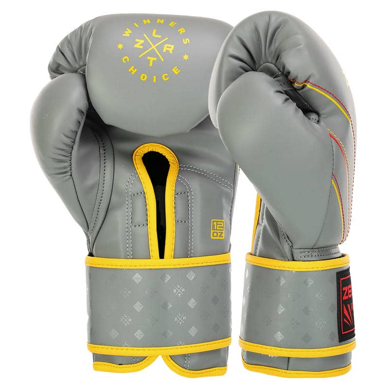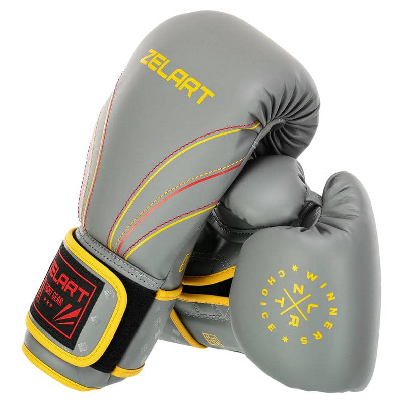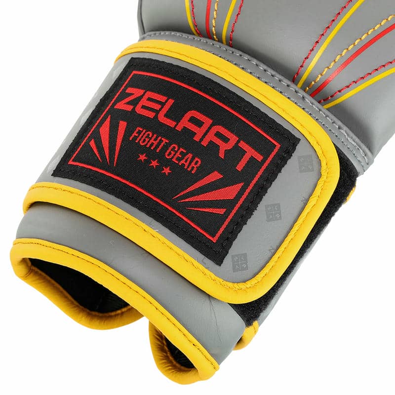 Боксерські рукавиці шкіряні Zelart 12 унцій, сірий-жовтий, код: BO-3843_12GR