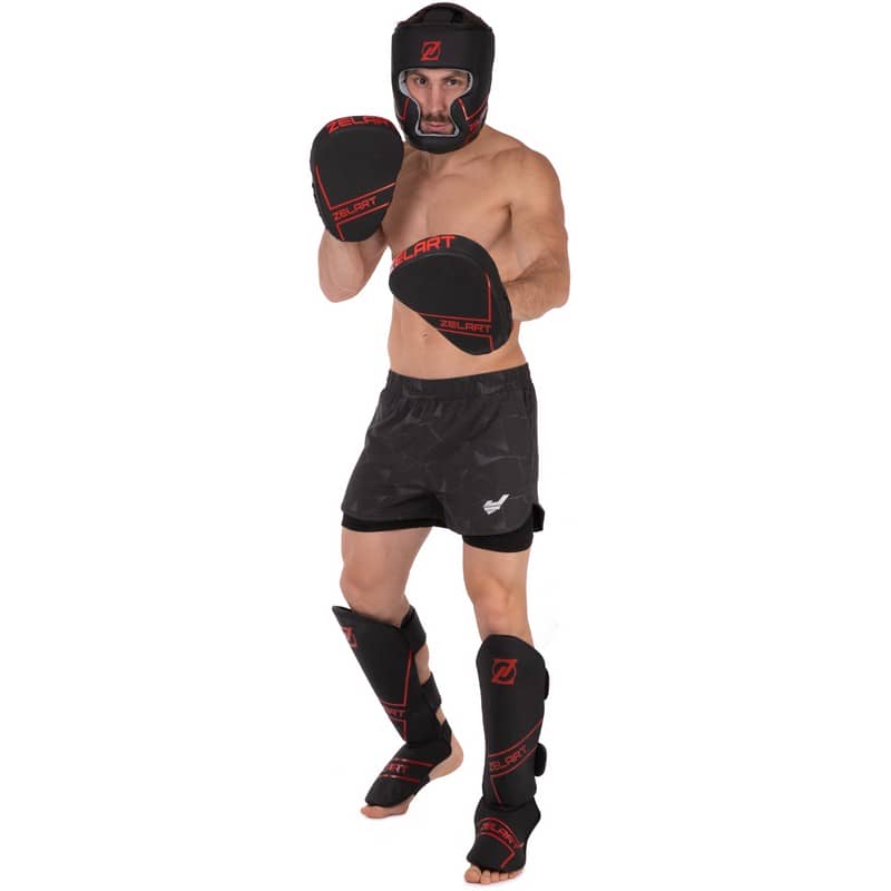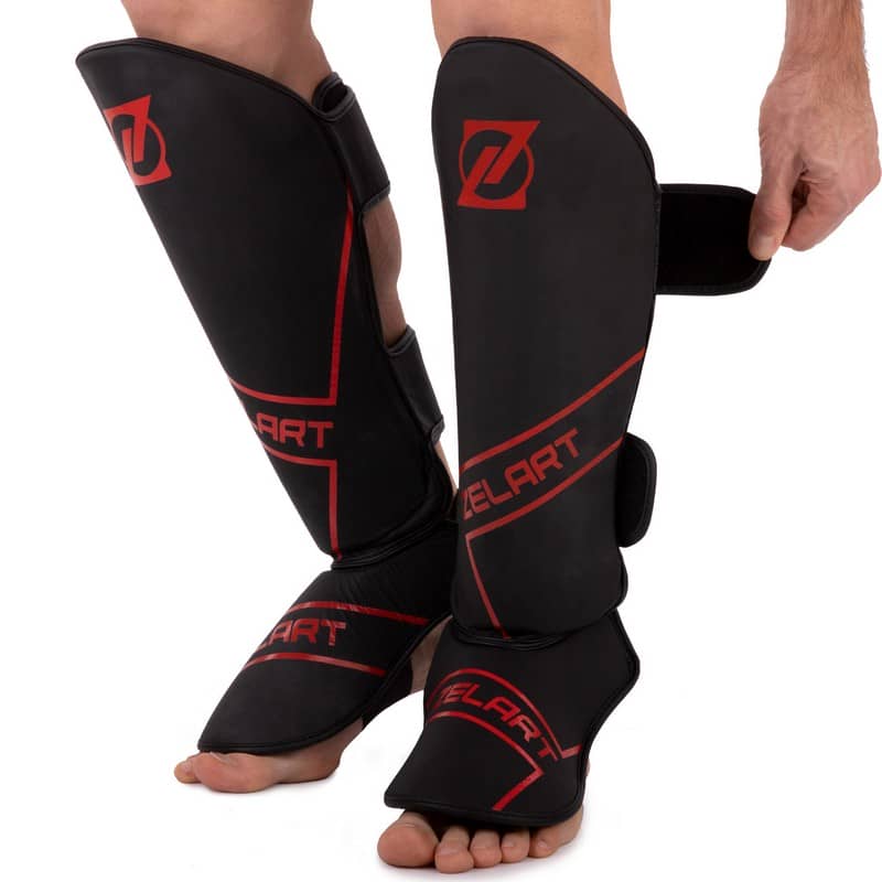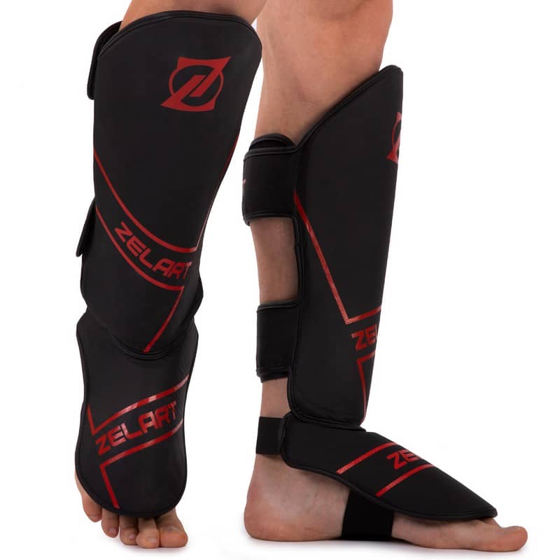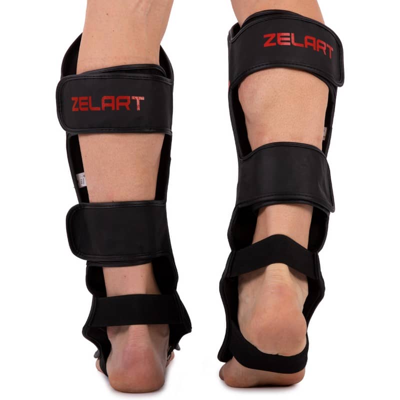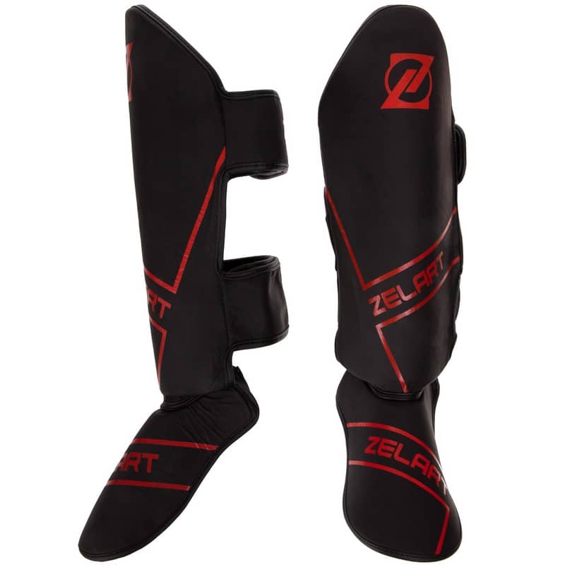 Захист для гомілки та стопи Муай Тай, ММА, Кікбоксинг Zelart L шкіряний, чорний-червоний, код: VL-3152_LBKR