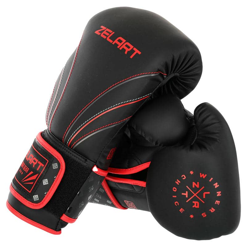 Боксерські рукавиці шкіряні Zelart 12 унцій, чорний-червоний, код: BO-3843_12BK