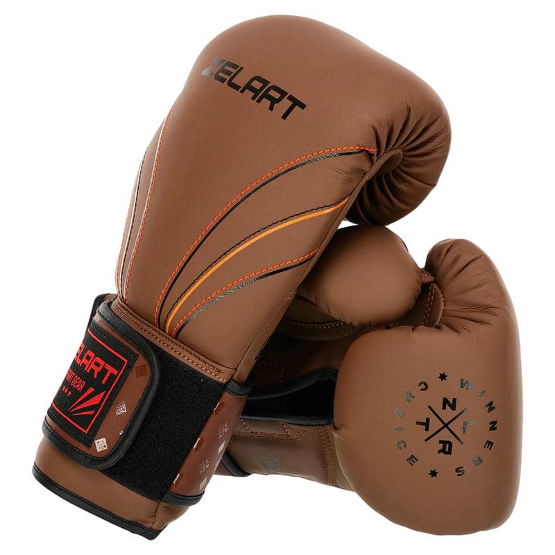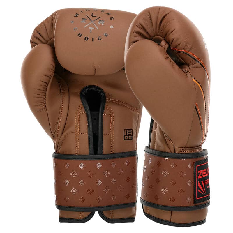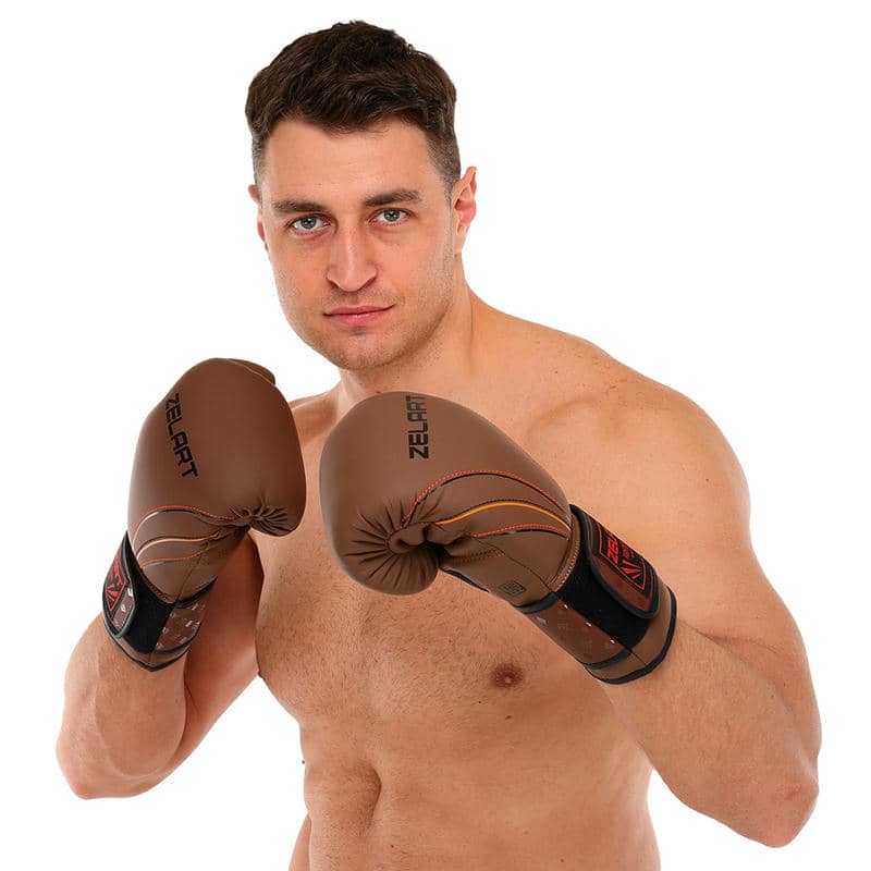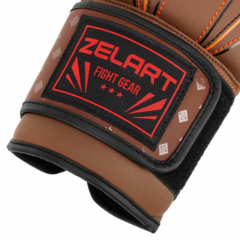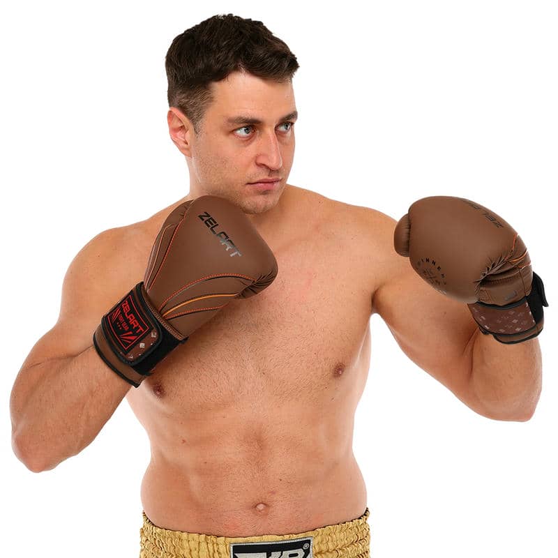 Боксерські рукавиці шкіряні Zelart 12 унцій, коричневий-чорний, код: BO-3843_12BR