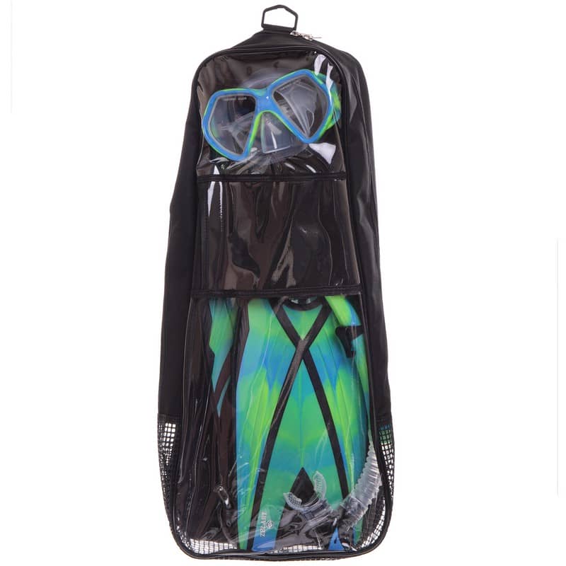 Набір для плавання маска з трубкою і ластами Zelart M-(7-8)-(40-41), синій-зелений, код: M243S-SN120S-F06_MBL