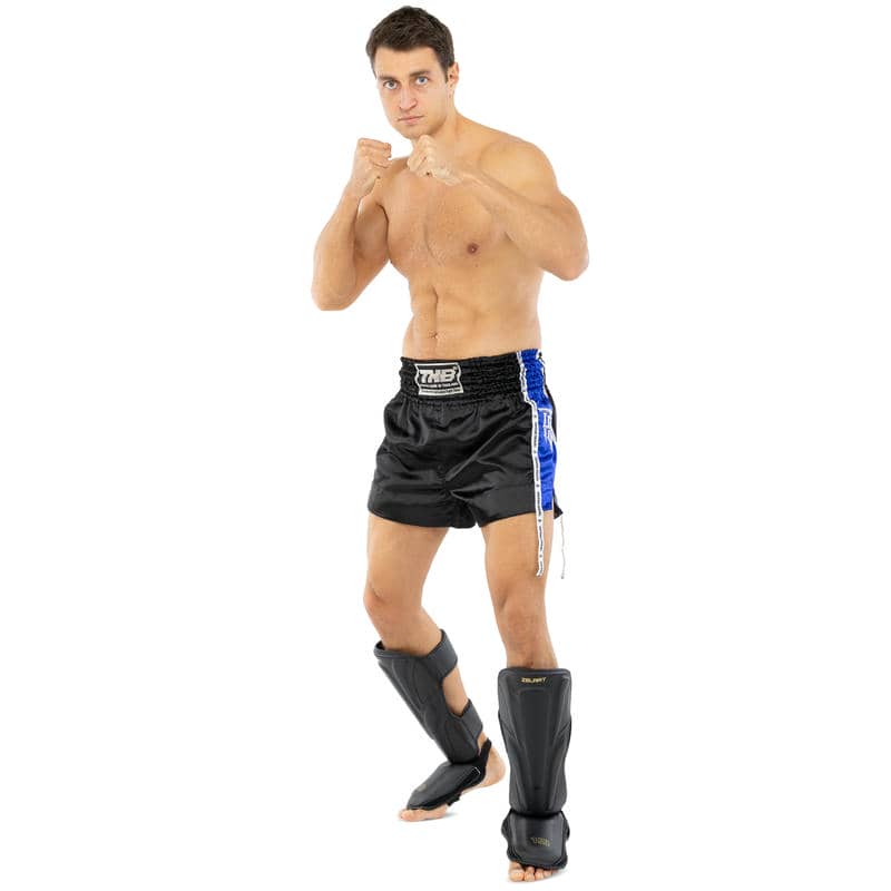 Захист гомілки та стопи для єдиноборств Zelart S, чорний-синій, код: BO-3981_SBK