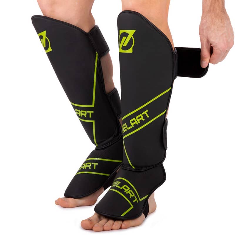 Захист для гомілки та стопи Муай Тай, ММА, Кікбоксинг Zelart M шкіряний, чорний-салатовий, код: VL-3152_MBKLG