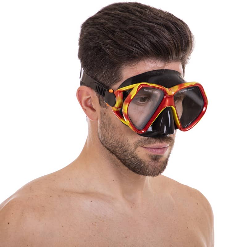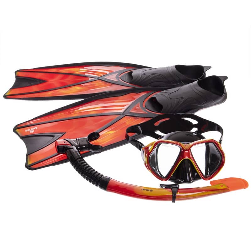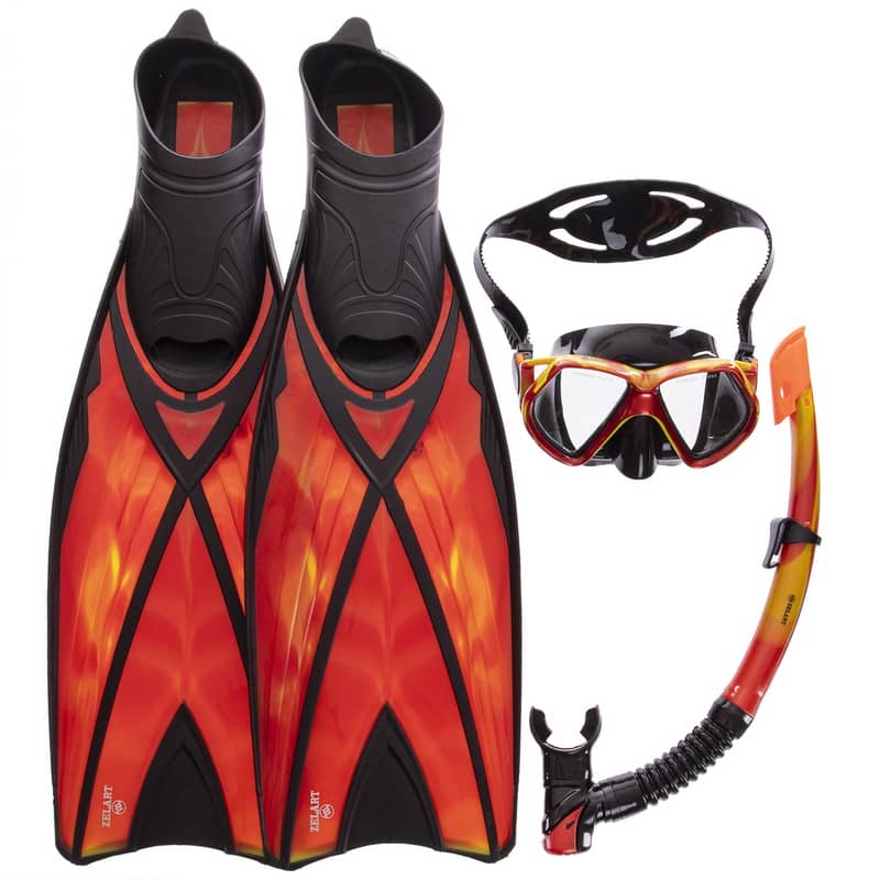 Набір для плавання маска з трубкою і ластами Zelart M-(7-8)-(40-41), жовтий-червоний, код: M243S-SN120S-F06_MYR