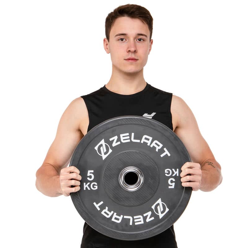 Блини (диски) бамперні для кросфіту гумові Zelart d-52мм, 5кг, чорний, код: TA-7798-5-S52
