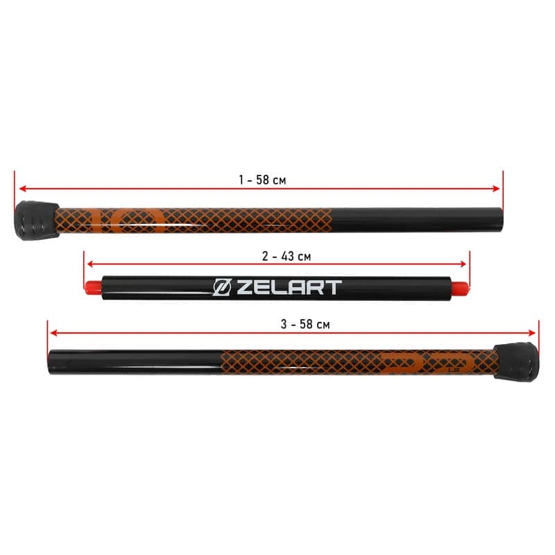 Палиця гімнастична (бодібар) 3-х секційна Bar Zelart 10кг, чорний-помаранчевий, код: FI-9994-10-S52
