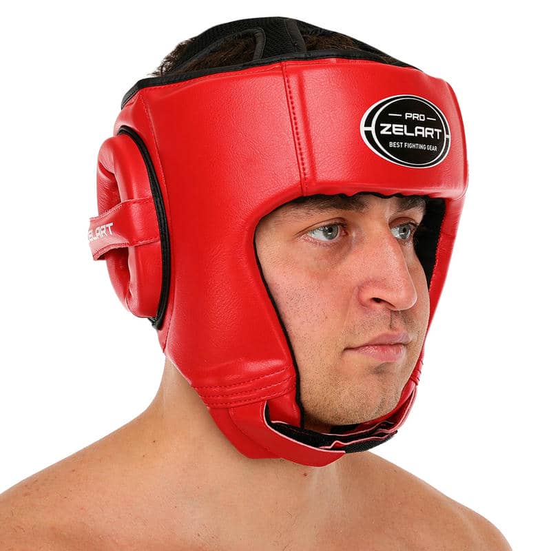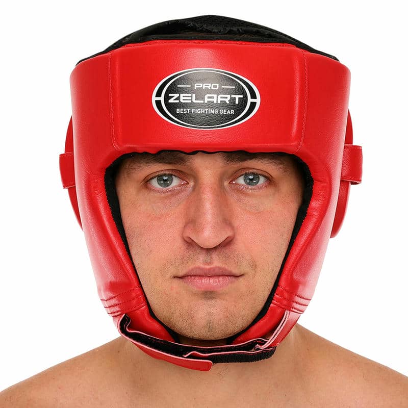 Шолом боксерський відкритий шкіряний Zelart L, червоний, код: BO-3904_LR